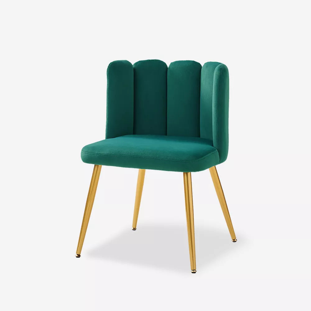 Barbara Velvet Vanity Stool for Makeup Room, Modern Accent Side Chairs for Living Room with Golden Metal Legs -Artful Living Design -Green